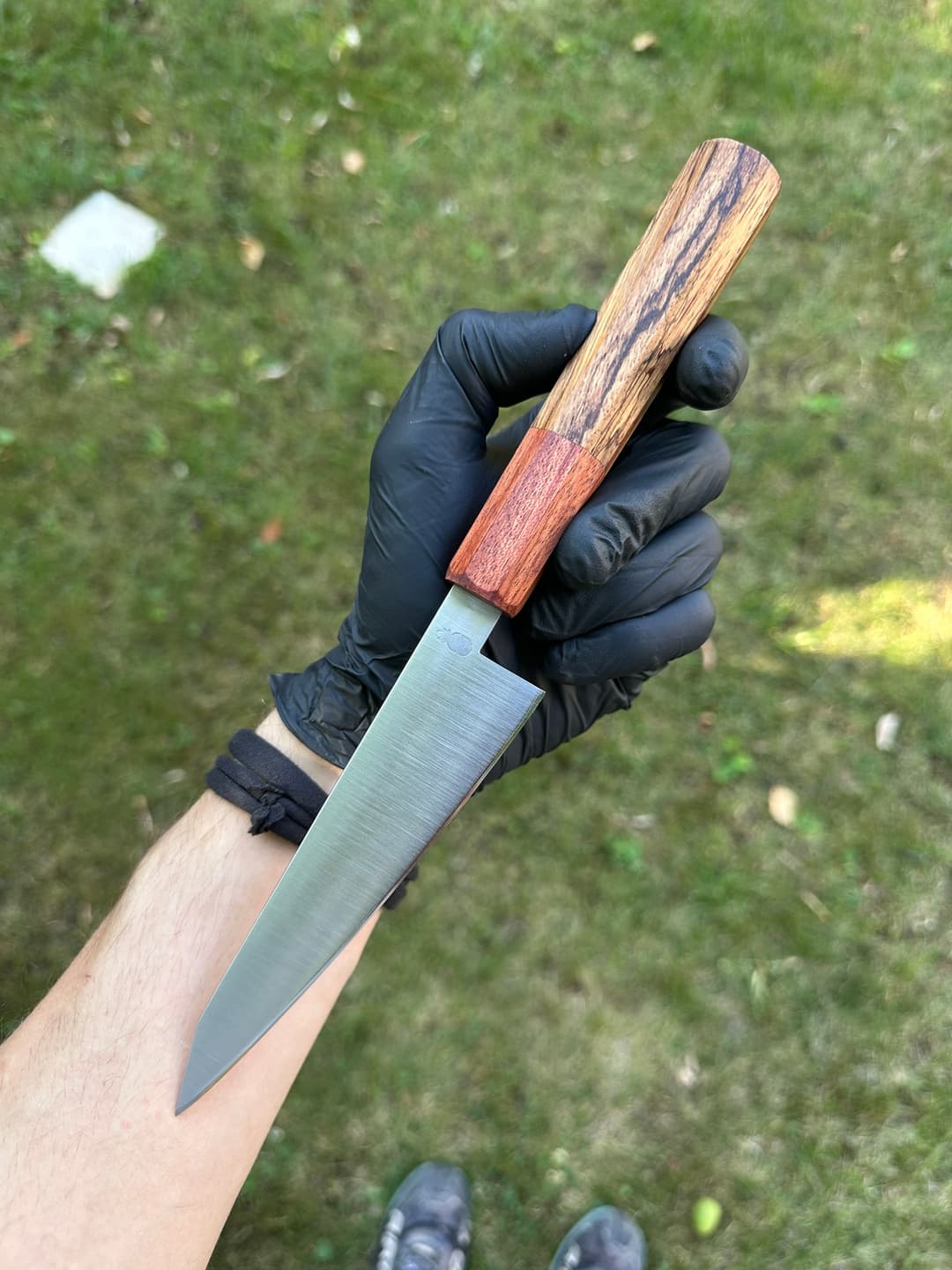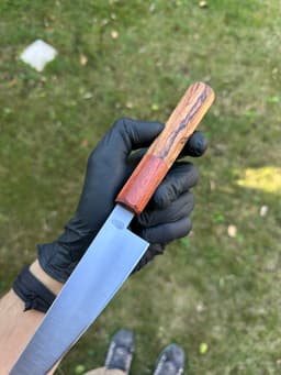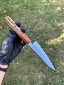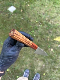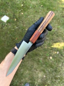 All my handles are hand-sanded to a minimum of 400 grit, ensuring you can appreciate all the fine details of the material. The blades are professionally heat-treated and sharpened before shipping. Unless otherwise stated in the description, my blades are always sharpened to 15° on each side. Sizes might have a slight difference to the one mentioned.