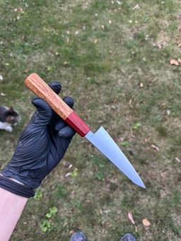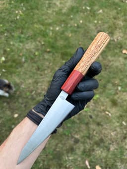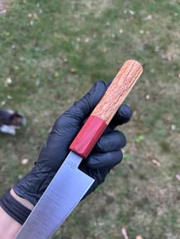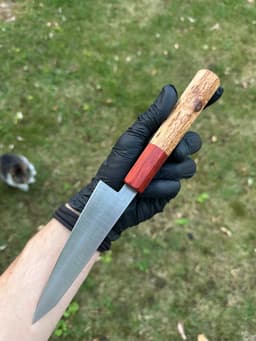 All my handles are hand-sanded to a minimum of 400 grit, ensuring you can appreciate all the fine details of the material. The blades are professionally heat-treated and sharpened before shipping. Unless otherwise stated in the description, my blades are always sharpened to 15° on each side. Sizes might have a slight difference to the one mentioned.
