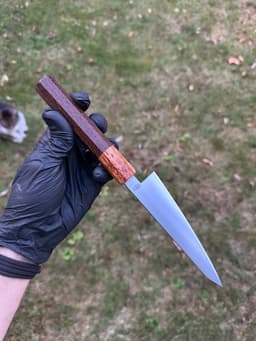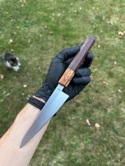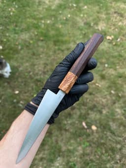 All my handles are hand-sanded to a minimum of 400 grit, ensuring you can appreciate all the fine details of the material. The blades are professionally heat-treated and sharpened before shipping. Unless otherwise stated in the description, my blades are always sharpened to 15° on each side. Sizes might have a slight difference to the one mentioned.